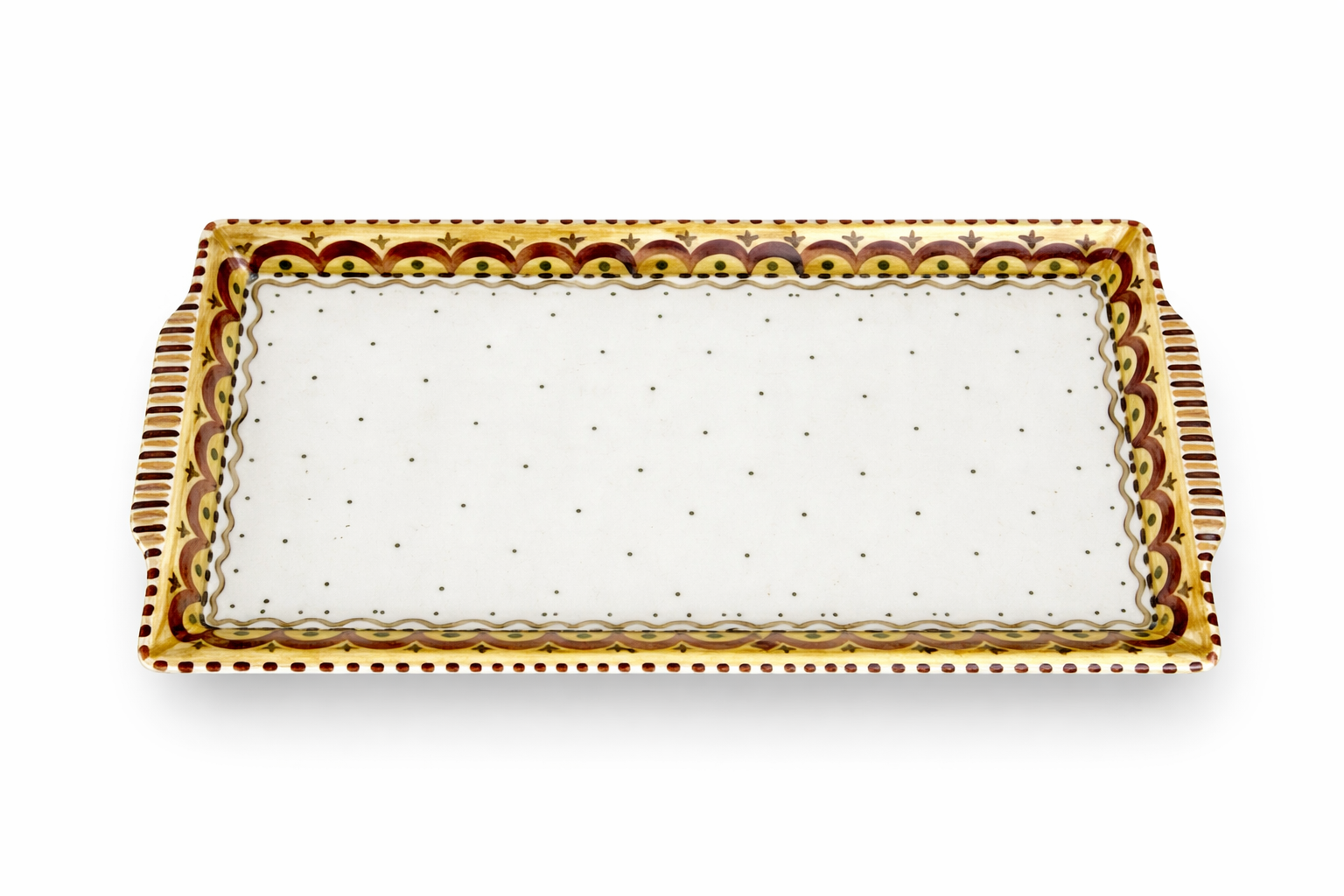 A bandeja é fabricada em porcelana de alta resistência, com acabamento detalhado e pintura manual que assegura sua autenticidade.