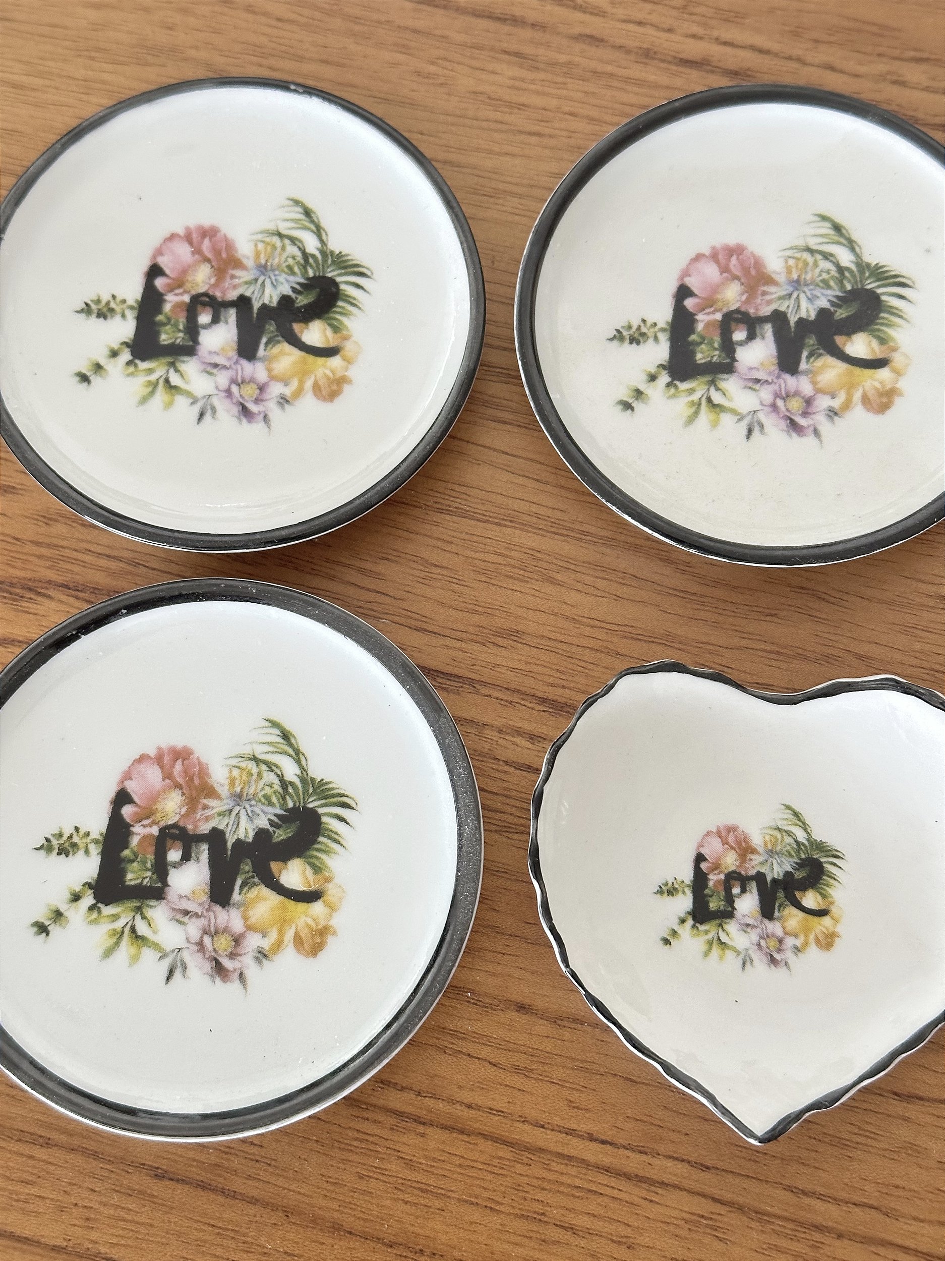 Peça em Porcelana com Estampa Love • uma estampa cheia de cor e graça em peças para usar como porta joias, no Décor e presentear.