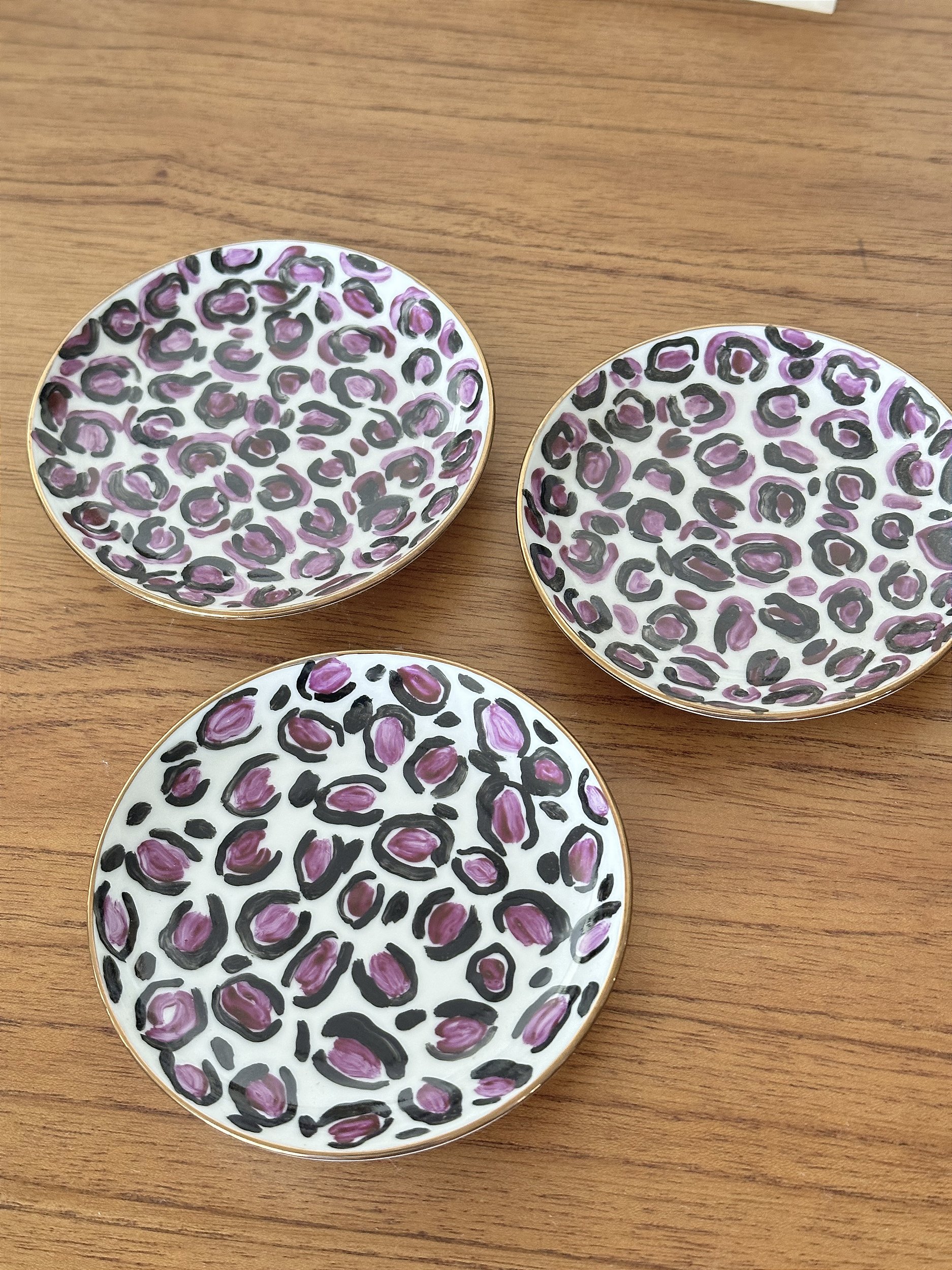 Peça em Porcelana com Estampa de Oncinha Pintada a Mão e Borda filete ouro • uma estampa linda em peças para usar como porta joias, no Décor e presentear.