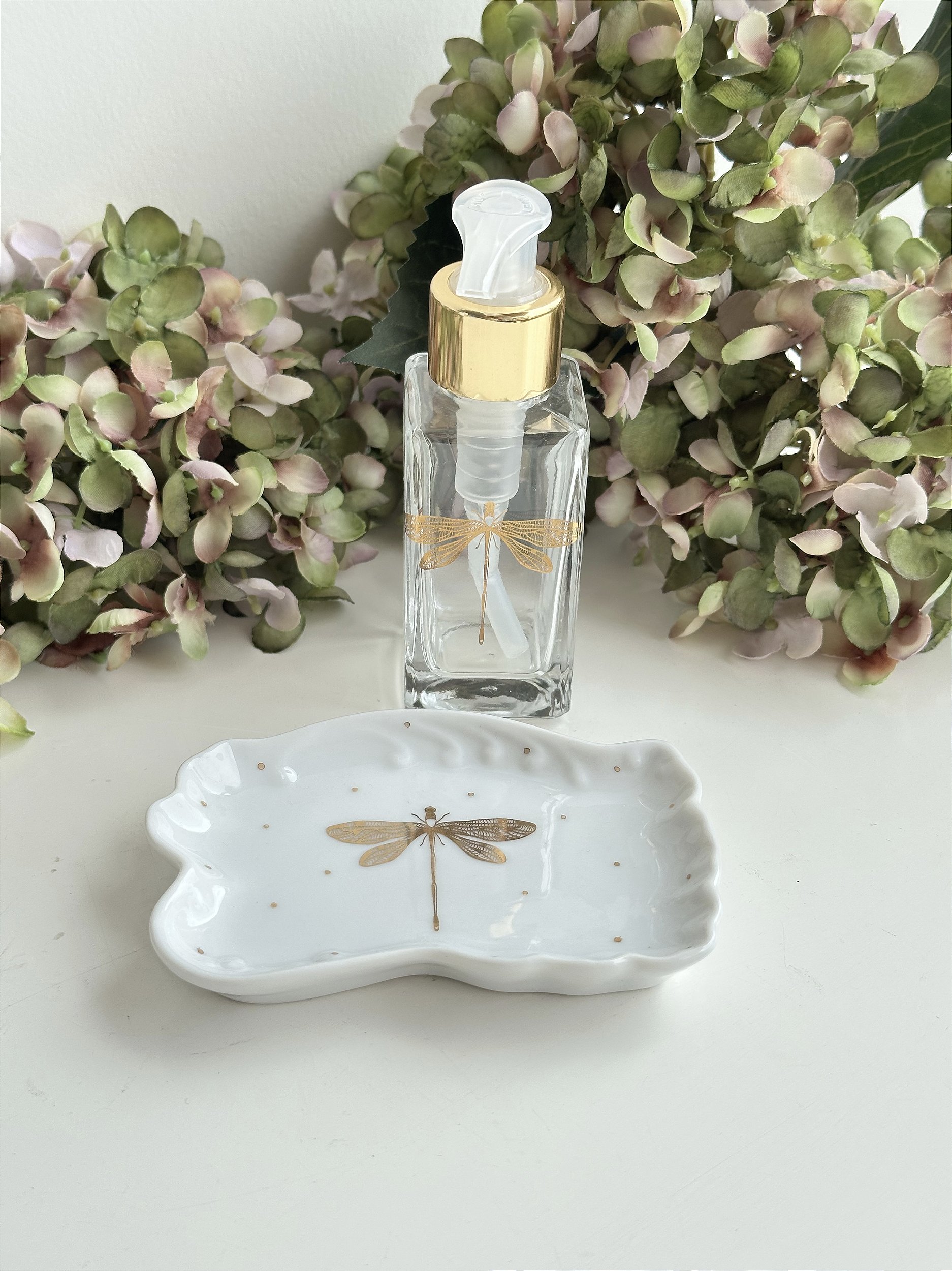 • Valor referente a 1 kit pratinho de porcelana porta joias diâmetro 11cm e 1 dispenser sabonete ou álcool gel.
