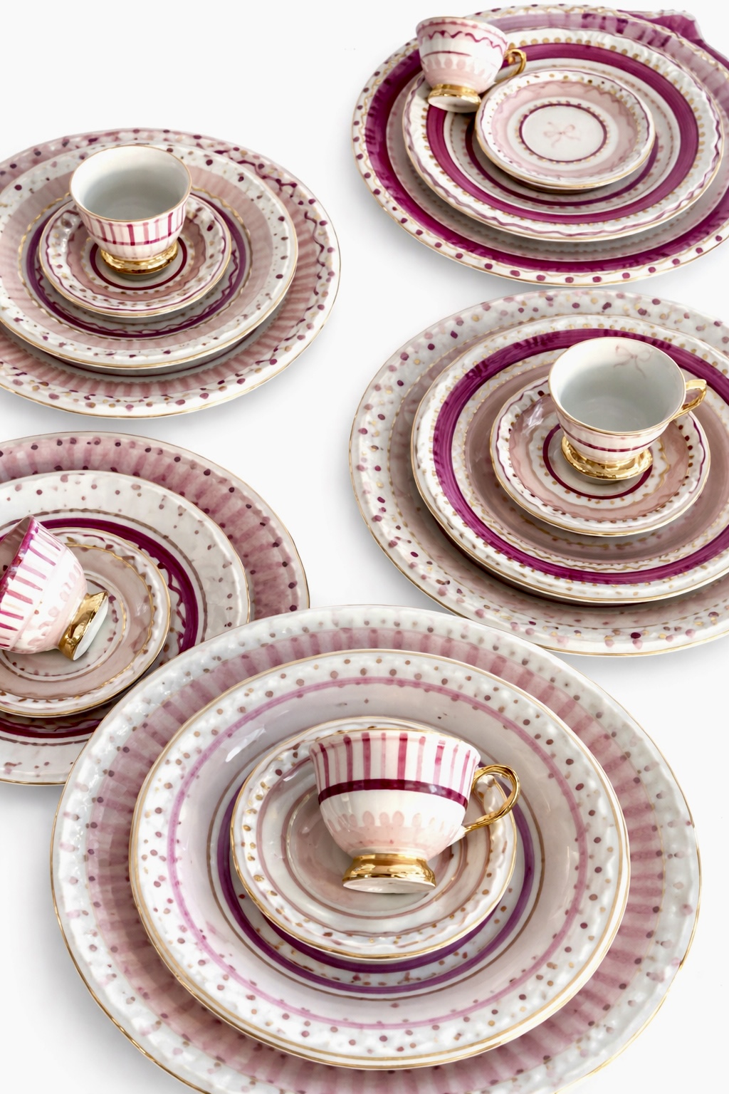 Todo pintado à mão com detalhes minuciosos de traços e mix de de detalhes sobrepostos, característico da marca LG Porcelana.